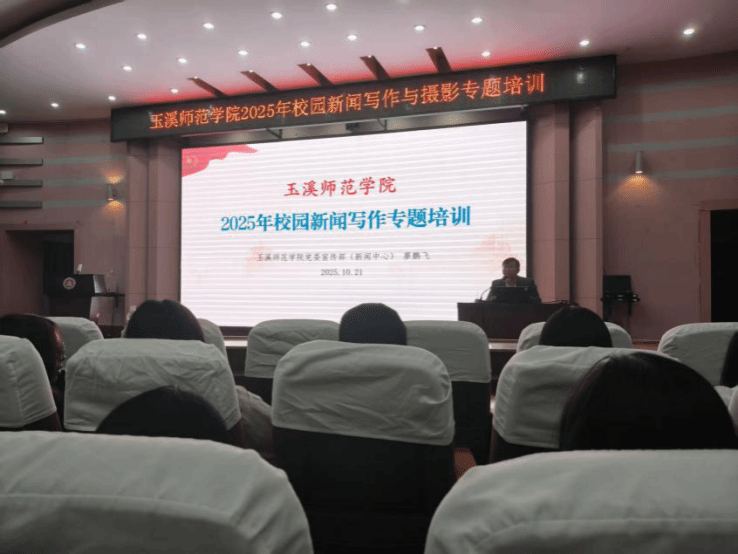 2025年10月21日,外国语学院在科学讲堂参加校园新闻写作与摄影专题培训。本次培训特邀董正福老师与廖鹏飞老师担任主讲,旨在系统提升学生记者的专业素养,打造一支兼具新闻宣传与摄影记录能力的骨干队伍。共46名外院学子报名参加。