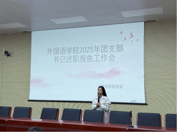 2025年10月24日下午14:30,外国语学院团委在二教501会议室组织召开“2025年团支部书记述职报告工作会”。会议由学院团委书记马继彬老师主持,团委副书记沈玉婷以及各团支部书记参加会议。